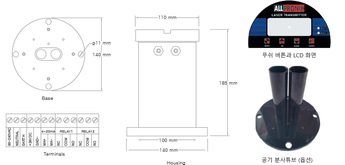 NEMA compliant, 4-20mA 2x relays, 5A @ 250Vac |